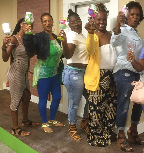 With a glassware party you and your friends will be able to choose from a wide variety of stencils that allow each painter to customize their own glass leaving more time to enjoy your beverage and your friends company!
